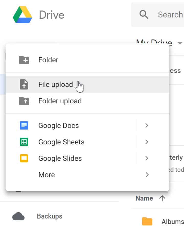 Once you have your audio files ready, open Google Drive, choose New from the Tools menu, locate the File Upload option, and select the audio file(s) you want to upload.