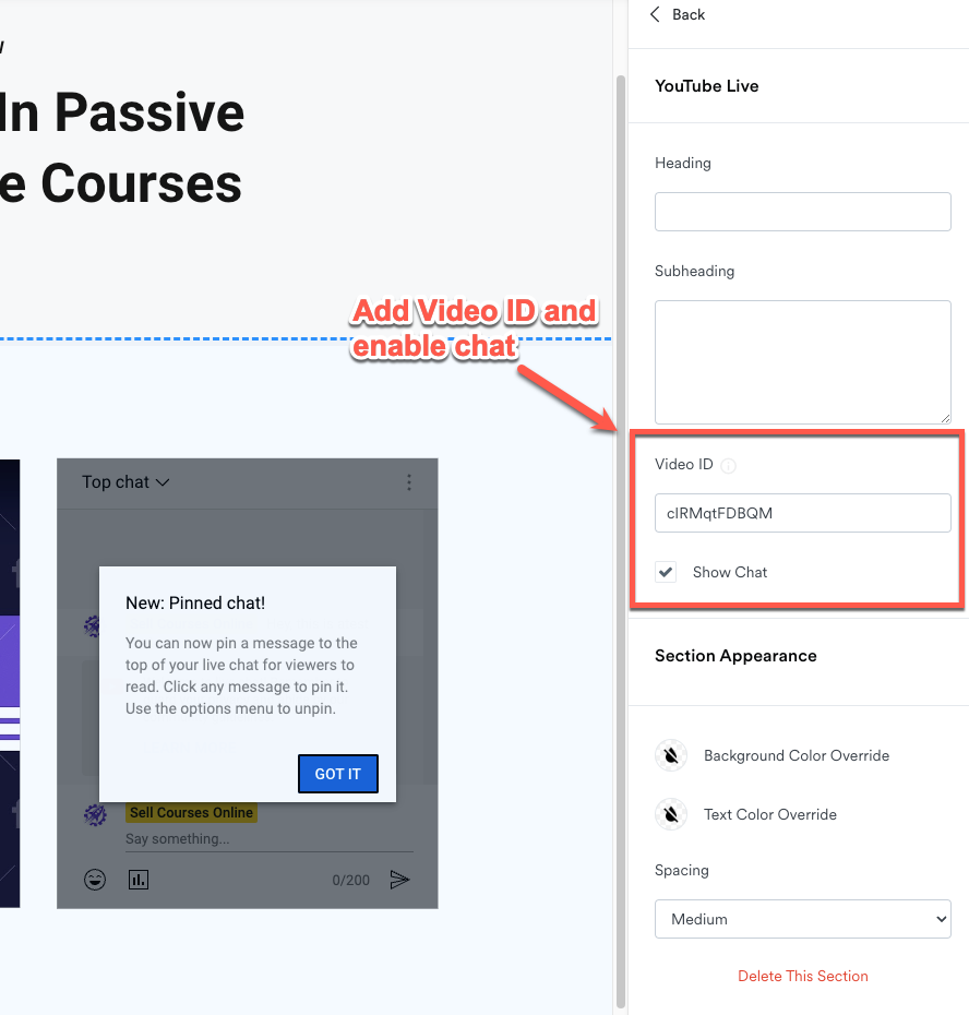 To do this, schedule a Youtube Live event and copy the video ID. Then, click on the Youtube Live section on your page and paste the ID.