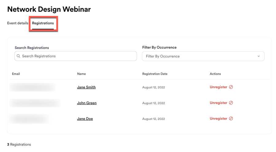 Lastly, if you want to see the list of those who registered for your event, you can click on Registrations next to Event details.