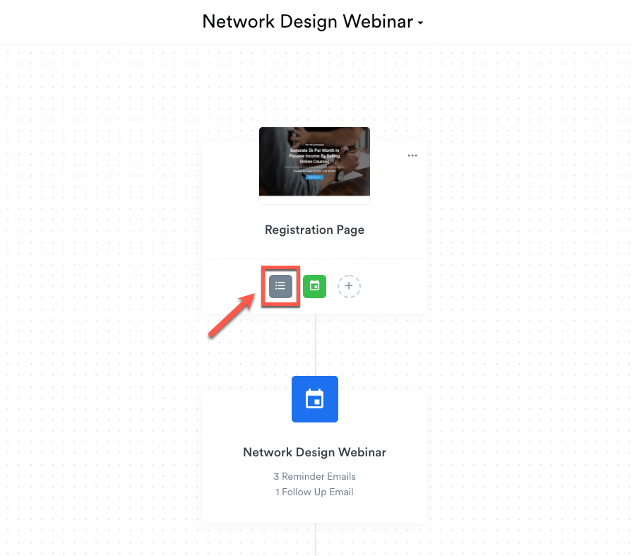 Once you’re done customizing the page, it’s time to edit the form settings. To do that, go back to the funnel builder and click on the small menu icon below the registration page.