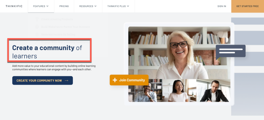 One of the biggest perks of using Thinkific for your membership site is that it offers a native community feature.