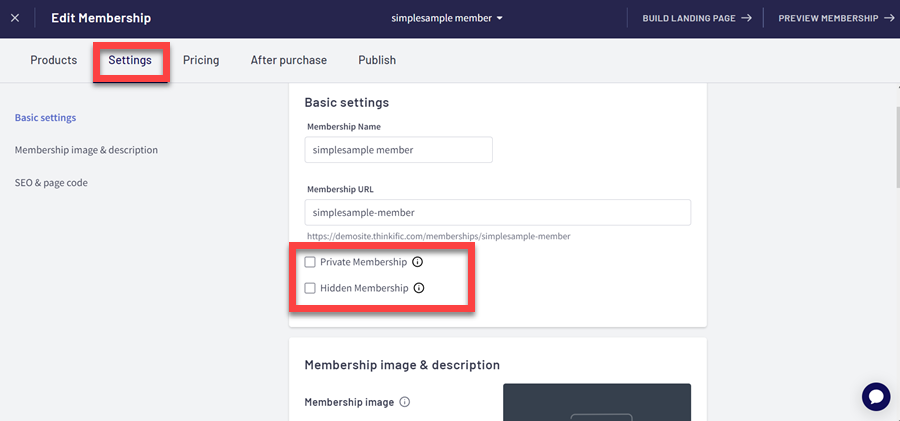 For this, go to your membership and click on Settings. Make sure your membership URL is correct, and you can also make your bundle Private or Hidden: