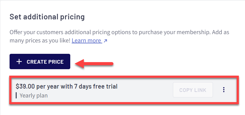 Now, you can have multiple pricing options for your membership. As you scroll down this page, you’ll see the option for setting up Additional Pricing for your membership.