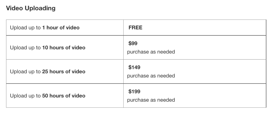 This is the cheapest subscription option, which is clearly a lot higher than Uscreen’s Basic plan.